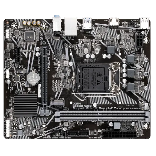 The GIGABYTE H470M K is a feature-rich Micro ATX motherboard designed to support Intel's 10th and 11th Generation processors, offering excellent performance, stability, and expandability for a wide range of computing needs. With its advanced technologies and comprehensive set of features, this motherboard provides an ideal platform for gaming, productivity, and multimedia tasks.One of the standout features of the GIGABYTE H470M K is its support for DDR4 memory modules. The board comes with two DDR4 DIMM slots that can accommodate up to 64GB of memory in dual-channel configuration. This allows users to take full advantage of the memory capabilities of the Intel Core processors, enabling smooth multitasking and faster data access.The motherboard is powered by the Intel H470 Express chipset, which provides robust connectivity options and system stability. Integrated Intel HD Graphics ensure that users can enjoy 4K visuals through the HDMI port, delivering sharp and vibrant images for multimedia and entertainment purposes.For storage, the GIGABYTE H470M K offers a variety of options to cater to different needs. It comes equipped with a high-speed M.2 connector, supporting both SATA and PCIe 3.0 x4/x2 SSDs, enabling lightning-fast data transfer rates and quicker system boot times. Additionally, there are two SATA 6Gb/s connectors for traditional storage devices, and the motherboard is also Intel Optane Memory Ready, further enhancing storage performance.The motherboard's I/O panel features a multitude of USB ports, providing six USB 2.0/1.1 ports for connecting peripherals, both on the back panel and through an internal header. This ensures easy access and connectivity for various USB devices, including keyboards, mice, and external storage.Networking capabilities are taken care of by the Realtek GbE LAN chip, offering a reliable and fast Gigabit Ethernet connection for seamless online gaming, streaming, and downloads.The GIGABYTE H470M K also boasts several special features, such as the APP Center, @BIOS, and EasyTune, which provide user-friendly utilities for system management, firmware updates, and performance optimization. Additionally, the ON/OFF Charge feature allows users to charge their smartphones and tablets even when the PC is powered off.To ensure the best possible user experience, GIGABYTE includes multiple safeguards like Q-Flash for easy and secure BIOS updates, Ambient LED for customizable RGB lighting, and System Information Viewer for monitoring system performance in real-time.Backed by a 3-year warranty, the GIGABYTE H470M K DDR4 Intel 10th and 11th Gen Micro ATX Motherboard is a reliable and future-proof choice for users looking to build a powerful and versatile PC system that can handle modern applications, gaming, and multimedia tasks with ease.
