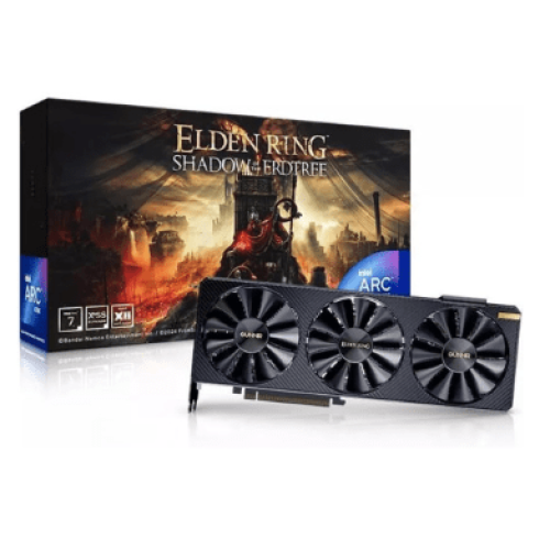 The GUNNIR Intel Arc A750 Photon 8G OC X ELDEN RING Shadow of the Erdtree Graphics Card is made to provide fluid gameplay and breathtaking graphics for high-performance gaming. With 8 GB of GDDR6 memory, this card can handle even the most demanding games with speed and dependability. With a maximum resolution of 7680 x 4320@60Hz, it is perfect for 4K and higher resolutions, providing incredibly detailed and clear images. Fast data transmission rates are ensured by the card's 256-bit memory interface and 2400 MHz memory clock speed, which allow for snappy gameplay and graphics. Built on a PCI Express 4.0 x16 bus, the GUNNIR Intel Arc A750 maximizes performance when paired with the newest motherboard generations. It supports up to four multi-display configurations for immersive gaming or work experiences, with three DisplayPort 1.4a connectors and one HDMI 2.0 port for display options. With a total power usage of 195 W, the card is supplied by two 8-pin connectors, and a 600 W PSU is recommended to provide reliable power delivery during intense gaming sessions. It is compatible with a wide variety of games and applications thanks to OpenGL 4.6 and DirectX 12 Ultimate, which offer improved graphics and real-time ray tracing. The "Shadow of the Erdtree" theme from ELDEN RING is included with this special edition of the Intel Arc A750, giving game enthusiasts a distinct visual aesthetic. With these strong qualities, the GUNNIR Intel Arc A750 Photon 8G OC is a great choice for developers and gamers that require strong graphics performance to do demanding tasks and AAA games without lag.