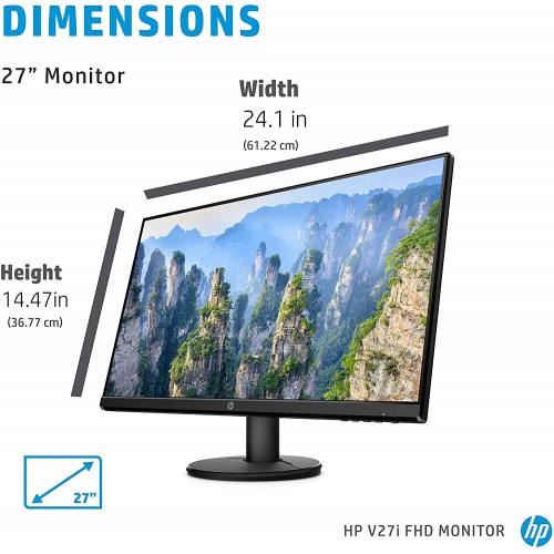 Stay productive and entertained with the HP V27i 27 inch 16:9 FHD IPS Monitor. Built to deliver crisp and clear images, this 1920 x 1080 Full HD resolution monitor is meant to supply high-quality experiences when performing everyday tasks like viewing photos, watching videos, performing on documents, browsing the web, or playing games. Its built-in low blue diffusing screen helps to scale back eye strain during use, and you'll adjust the screen's tilt to fit your comfort.