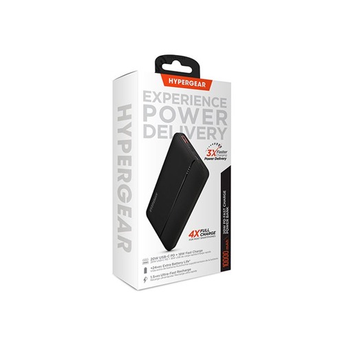 Hypergear 20W PD Fast Charge Power Bank offers unparalleled convenience and reliability for users who need to stay connected on the go. With its compact and lightweight design, this power bank is the perfect companion for travel, outdoor adventures, or everyday use. Featuring a robust 10000mAh capacity, the Hypergear power bank ensures that you never run out of battery power when you need it most. Whether you're charging your smartphone, tablet, or other USB-powered devices, this power bank delivers reliable and efficient charging performance to keep you powered up throughout the day. Equipped with 20-Watt USB-C Power Delivery (PD) technology, this power bank offers fast and efficient charging for compatible devices. The USB-C port delivers a maximum output of 20W, allowing you to charge your devices quickly and conveniently. Additionally, the power bank features a USB-A port with 18W output, providing versatility for charging a wide range of devices. With multiple input interfaces including Type-C and Micro USB, the Hypergear power bank offers flexibility and convenience when it comes to recharging. Whether you're using a Type-C cable or a Micro USB cable, you can easily recharge the power bank to ensure that it's ready for your next adventure. The Hypergear power bank is packed with advanced features to ensure safe and reliable charging. It incorporates Smart Chip Technology and AFC (Adaptive Fast Charging) Technology, which automatically adjusts the voltage to provide optimal charging efficiency while protecting your devices from overcurrent, short-circuit, and overcharge. Additionally, the power bank features a multi-layer protection system to safeguard against potential damage and ensure peace of mind. With its LED battery level indicator, you can easily check the remaining power of the power bank at a glance, so you'll never be caught off guard by a depleted battery. Plus, its ultra-slim and lightweight design make it easy to carry in your pocket, bag, or backpack, allowing you to stay connected wherever you go. In summary, the Hypergear 20W PD Fast Charge Power Bank combines reliable performance, advanced technology, and sleek design to deliver a portable charging solution that meets the needs of modern users on the move.