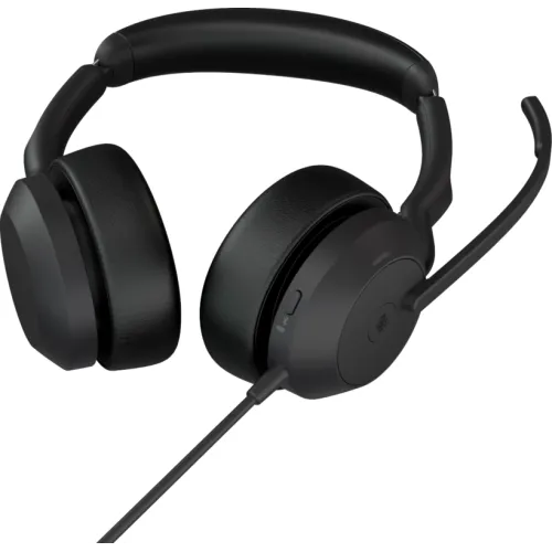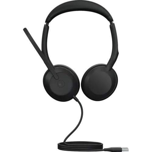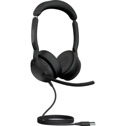Jabra Evolve2 50 MS Stereo USB-A Headsset is a premium headset with excellent sound quality and comfort for both work and play. With its active noise cancellation (ANC) technology, it has a binaural design that covers both ears and shuts out background sounds. It also has a noise cancellation (NC) microphone for clean and crisp audio calls. The Jabra Evolve2 50 MS Stereo USB-A Headset may be connected to your notebook, PC, smartphone, or tablet through Bluetooth or USB Type-A. It also has a Microsoft Teams certification, which allows you to launch the app with a one tap. Jabra Evolve2 50 MS Stereo USB-A Headset offers a slim and ergonomic design that fits comfortably over your ears. It weighs about 0.149 kg and is available in a trendy black color.
