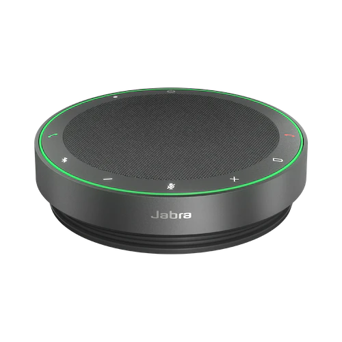 The Jabra Speak2 75 is a professional speakerphone built for hybrid working situations. It has excellent audio quality, with super-wideband audio and a full-range speaker. The professional full duplex audio ensures natural and uninterrupted discussions. It catches sound from all directions while minimizing background noise thanks to four beamforming microphones and noise reduction technologies. For improved voice clarity, the speakerphone has a microphone quality indication and voice level equalization. It is certified for top platforms and offers a premium portable design with durability. It provides simple setup, up to 32 hours of wireless use, and supports both USB-A and USB-C connectivity. The Speak2 75 is environmentally friendly, as it is comprised of 33% recycled materials.