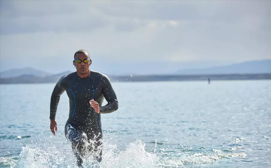 When your routine takes place both in and out of the water, JBL Endurance DIVE headphones are built to keep up. Guaranteed never to hurt or fall out, Dive amplifies your workout with an IPX7 waterproof rating. Its sleek PowerHook™ design powers on automatically when you slip it behind your ear, while a secure wireless neckband keeps it in place. Leave your device behind with Dive’s 1 gigabyte memory storage (up to 200 music tracks), accessed with touch controls. And with 8 hours (max) of battery, Dive is ready to hit the pool, track, and gym all in one day.
