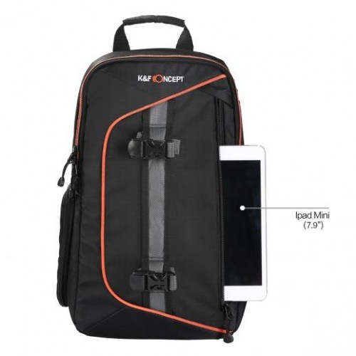 K&F Concept Waterproof Sling Multi-function Camera Backpack fits for DSLR camera with attached standard zoom lens, 1-2 extra lenses or a flash and accessories, a compact tripod or monopod and personal items. It's design allows for quick rotation from the back to the front of your body, giving you easy and fast access to your gear (side zippered pockets for easy access,back-open design antitheft). This Backpack designed with Two removable straps with quick-release buckles are included for quick attachment of your tripods and also featured with Material: 100% Waterproof Nylon, External Dimensions 9.06*5.51*14.57 (23cm x 14cm x 37cm), and Weight 0.58kg. Its lightweight and durable travel bag is ideal for on-the-go use! Improve the pleasure of your journey and give you a sense of security. the new stylish K&F Concept Waterproof Sling Multi-function Camera Backpack is compatible with Canon EOS Rebel SL1/ T3/ T3i/ T5, Nikon D3200, Nikon D3300, Sony Alpha A5000, and Sony Alpha A6000, etc. This stylish K&F Concept Waterproof Sling Multi-function Camera Backpack has no warranty.