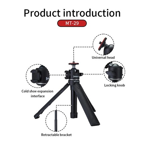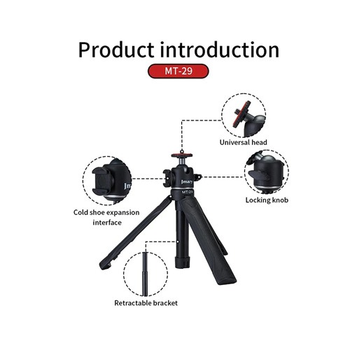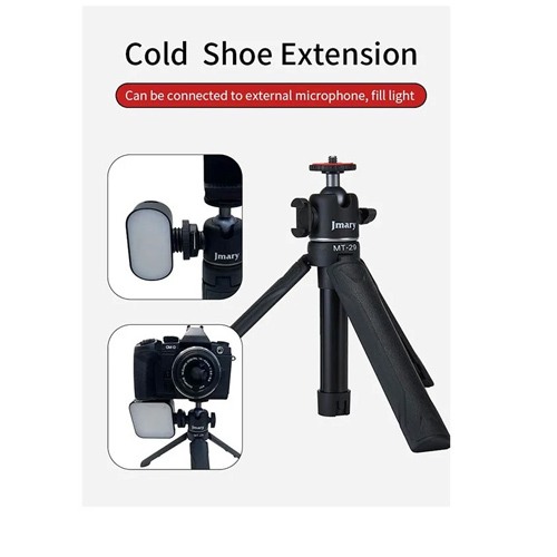K2 Jmary MT-29 Black Portable Stand Tripod is a versatile and reliable accessory designed to enhance your photography and videography experience. Crafted with a combination of aluminum alloy and ABS materials, this tripod boasts durability and lightweight construction, making it an ideal companion for on-the-go shooting sessions With a maximum load capacity of 2 kilograms, this tripod can securely hold a wide range of cameras, including SLRs, action cameras, and even mobile phones, providing flexibility for various shooting scenarios. Whether you're capturing breathtaking landscapes, dynamic action shots, or stable video footage, the K2 Jmary MT-29 is up to the task. Equipped with a 1/4 inch male camera mounting screw, this tripod ensures a secure attachment for your camera, keeping it stable and steady throughout your shooting sessions. The included ball head allows for smooth and precise adjustments, enabling you to achieve the perfect angle and composition for your shots. Designed for convenience and ease of use, the K2 Jmary MT-29 features three leg positions and four sections in the center column, providing versatility in height adjustment. With a maximum working height of 18.9 inches and a minimum working height of 8.26 inches, you can adapt the tripod to suit your specific shooting needs, whether you're shooting from low angles or capturing elevated perspectives. Compact and portable, this tripod collapses to a closed length of 8.26 inches, making it easy to transport and store when not in use. Whether you're traveling to remote locations or simply exploring your local surroundings, this tripod is ready to accompany you on your photographic adventures. While offering exceptional functionality and performance, the K2 Jmary MT-29 also sports a sleek and stylish black finish, adding a touch of sophistication to your photography gear. Plus, with no warranty details provided, you can rest assured that you're investing in a high-quality product that's built to last. Overall, the K2 Jmary MT-29 Black Portable Stand Tripod combines durability, versatility, and convenience, making it an essential tool for photographers and videographers of all skill levels. Whether you're a seasoned professional or an enthusiastic hobbyist, this tripod is sure to elevate your creative pursuits to new heights.