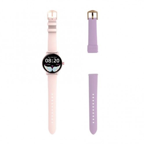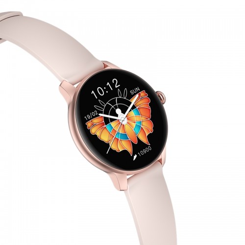 The Kieslect Imilab L11 is an excellent Smart Watch. This particular smartwatch model is specially made for women's usage. This is why this watch comes with some women-centric features. This Round dialed smartwatch is specifically designed for women only. This watch has a Borderless design That uses exquisitely crafted curved glass. but apart from that, This watch supports a variety of features and customizable options. The Aluminum made dial is Pink colored. The Display is a borderless IPS panel 1.09 Inch screen that supports the screen resolution of 240 x 240 pixels. This smartwatch is compatible with Android and IOS Operating systems. This watch comes with various sensors like the Heart-rate, Proximity, and Accelerometer sensor. This smartwatch supports Bluetooth Version 5.0 as a form of connectivity. But it does not have Bluetooth calling, NFC, or GPS. but this watch has 9 Multi-sports modes with a real-time Heart rate monitor, Blood Oxygen Monitor, Sleep monitor, cycle monitor, and more. This watch is IP68 Waterproof. The supported apps include Sedentary reminders, Sleep monitors, Alarms, Barometer, Brightness Adjusting, etc. The Battery Capacity is180 mAh. with a Normal Usage of around 2-3 days. This smartwatch utilizes an App named GloryFit. This app is compatible with both Android and iOS. This watch has interchangeable Straps made with Silicone. with the basic watch mode. The 180 mAh Battery can last up to 4 days on a single charge. The dimensions of this smartwatch are 46.3 x 40.5 x 11.4 mm. This watch weighs around 22.0 g. Kieslect Imilab L11 Lady Smart Watch.