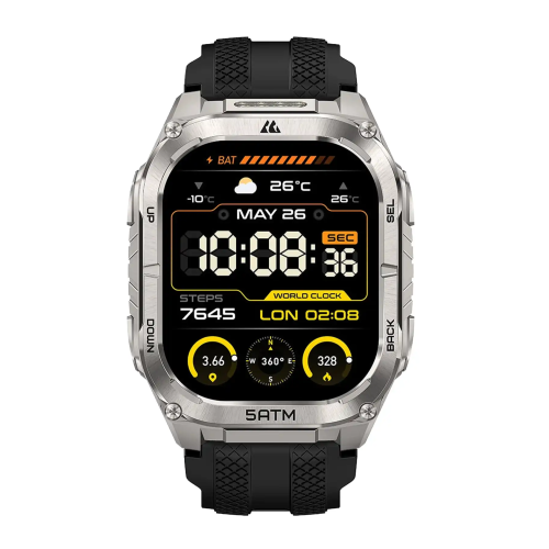 TThe KOSPET Tank M4C is a rugged, tool-focused smartwatch released in early 2026, designed specifically for those who demand high-level durability alongside practical utility. Positioned as a versatile companion for outdoor enthusiasts and professional workers alike, the M4C balances a lightweight build with a formidable set of features.Rugged Design and DisplayThe watch features a vibrant 1.96-inch AMOLED display protected by Corning Gorilla Glass 3, offering a sharp $410 \times 502$ resolution and a peak brightness of 1,000 nits. This ensures perfect legibility even in direct sunlight. The body combines a stainless steel bezel with a zinc alloy frame, achieving MIL-STD-810H certification for shock, vibration, and extreme temperature resistance. With a 5 ATM and IP69K water-resistance rating, it is built to survive swimming and high-pressure water jets.Key Utility FeaturesWhat sets the M4C apart are its specialized "tool" functions:LED Flashlight: A built-in, 5-level adjustable LED torch on the top of the case provides powerful illumination for night shifts or emergencies.Walkie-Talkie: It supports a short-range walkie-talkie function for instant group communication with up to four people within a 40-meter range.Dual-Band GPS: Utilizing a six-system GNSS (GPS, Galileo, GLONASS, BeiDou, QZSS, and NavIC), it provides pinpoint tracking for 170+ sports modes.Performance and BatteryEquipped with a 500mAh pure cobalt battery, the Tank M4C delivers up to 16 days of typical usage or about 5 days with the Always-On Display (AOD) active. Health tracking is powered by an advanced 4PD sensor, monitoring heart rate, $SpO_2$, stress, and sleep stages including REM. It also includes an electronic compass and barometric altimeter for real-time elevation and weather tracking.Whether navigating a trail or working in low-light environments, the KOSPET Tank M4C provides a reliable, all-in-one wearable experience at a competitive price point.