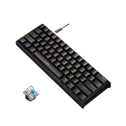 The Leaven K620 Wired Mechanical Keyboard in full black is a sleek and stylish option for both gamers and typists. It features a compact design with high-quality mechanical switches, providing a satisfying tactile feedback and durability for extensive use. The keyboard is designed for optimal performance, with a comfortable layout that facilitates quick and accurate typing.