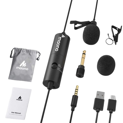 MAONO AU100R lavalier microphone has a built-in rechargeable battery to make it available for over 90 hours working time which is suitable for outside use, don't worry about being out of power. The micro USB charging cable and carrying bag are included in the package