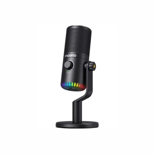 Visually, the DM30 is designed to complement a modern gaming setup with its controllable RGB lighting. The lighting can be customized through the MAONO-LINK software, offering five dynamic multi-color gradients and seven static colors to match your aesthetic. The microphone also features a convenient 3-in-1 knob for on-the-fly adjustments to headphone volume, mic gain, and a single-click mute function, which is a great quality-of-life feature for live use.
