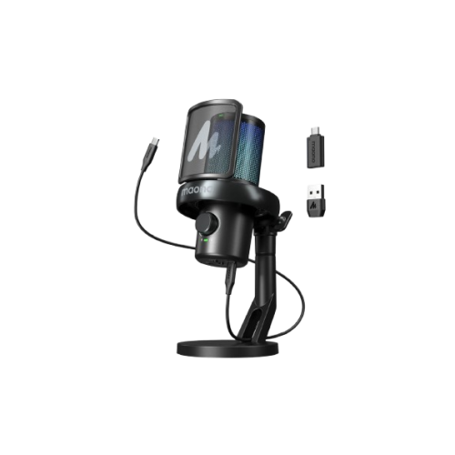 The Maono DM40 Pro is a versatile and innovative USB microphone designed for modern content creators who prioritize both wireless freedom and advanced features. Its standout attribute is the dual-mode connectivity: it can be used as a traditional wired USB-C microphone, or as a wireless microphone using the included USB-C and USB-A receivers. This provides immense flexibility for gamers, streamers, and podcasters who want to move around without being tethered to their computer.
