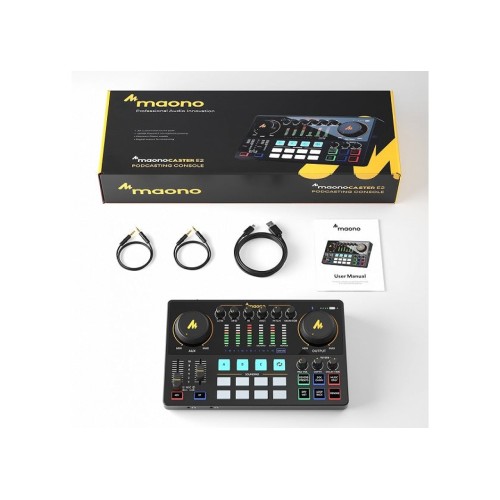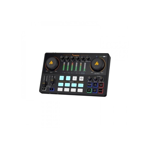 The MAONOCASTER AME2 is an all-in-one integrated audio production studio designed to simplify the professional audio setup for podcasters, streamers, and content creators. It combines a high-quality sound card, a mixer, and a range of useful effects into a single, compact console. This device is an ideal solution for those who want to elevate their audio without the complexity of a traditional multi-component setup.