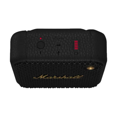 Introducing the Marshall Willen Portable Bluetooth Speaker, a compact and stylish audio companion that delivers impressive sound quality in a sleek package. Designed for music lovers on the move, this speaker offers portability, durability, and reliable wireless connectivity.Featuring dynamic drivers, including a single 2" full-range driver and two passive radiators, the Marshall Willen delivers powerful and balanced audio with remarkable clarity. With a noise ratio of 82 dB SPL @ 1 m, this speaker ensures that your music is heard with detail and depth.The Marshall Willen is built to withstand the elements, boasting an IP67 water resistance rating. Whether you're lounging by the pool or enjoying outdoor activities, this speaker can handle splashes and even submersion in water. Additionally, it offers dust resistance, making it suitable for various environments.Equipped with a 10 Watt Class D amplifier for the driver, the Marshall Willen delivers impressive sound output with precise audio reproduction. The built-in battery provides over 15 hours of playtime on a single charge, allowing you to enjoy your music for extended periods. With a quick 20-minute charge, you can get up to 3 hours of playtime, ensuring that your music doesn't stop when you're in a rush. The speaker fully charges in just 3 hours, so you can quickly recharge and get back to your tunes.The Marshall Willen utilizes Bluetooth 5.1 technology for seamless wireless connectivity. It ensures a stable and reliable connection to your devices, allowing you to stream music wirelessly with ease. The speaker supports the SBC codec, delivering high-quality audio streaming.Measuring 101.6 x 100.5 x 40.4 mm (4 x 3.96 x 1.59 in) and weighing only 0.31 kg (0.68 lb), the Marshall Willen is compact and lightweight, making it easy to carry in your bag or pocket. It's designed to be the perfect travel companion, allowing you to enjoy your favorite music wherever you go.