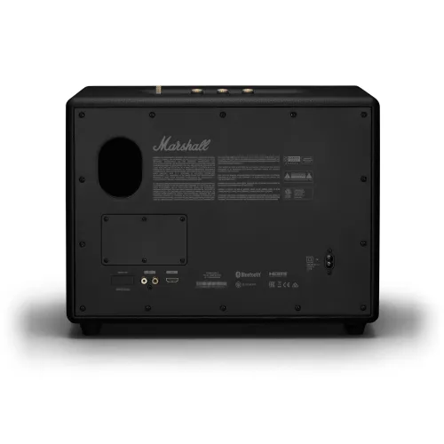 The Marshall Woburn III offers various connectivity options to suit your audio needs. It features a 3.5 mm input and an RCA input, allowing you to connect external devices such as smartphones, tablets, or audio equipment directly to the speaker. Furthermore, it includes an HDMI input, enabling seamless connection to compatible devices for an enhanced audiovisual experience. With Bluetooth 5.2 technology and readiness for Bluetooth LE Audio, the speaker provides stable wireless streaming, ensuring a hassle-free and high-quality audio connection.Measuring 400 x 317 x 203 mm (15.75 x 12.48 x 7.99 in) and weighing 7.45 kg (16.42 lb), the Marshall Woburn III showcases a classic Marshall design, featuring a vintage-inspired front grille and iconic logo. Its substantial size and presence make it a centerpiece in any room, adding a touch of elegance and sophistication to your space.With a wide frequency response range of 35–20,000 Hz, the Marshall Woburn III faithfully reproduces your music across the entire spectrum, from deep lows to crisp highs. Whether you're enjoying your favorite tracks or immersing yourself in movies or games, this speaker delivers a rich and detailed audio experience that brings your content to life.While the Marshall Woburn III does not come with a warranty, you can trust in the quality and craftsmanship that Marshall is renowned for. The speaker is built to withstand the test of time and provide reliable and consistent performance.