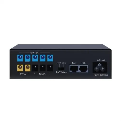 | Output Voltage (Optional) | PoE: 15V / 1.0A or 24V / 1.0A (+4,5pins; -7,8pins) DC: 12V / 3.0A * 3 ports DC: 12V / 1.5A * 5 ports DC: 9V / 1.0A * 2 ports | |
