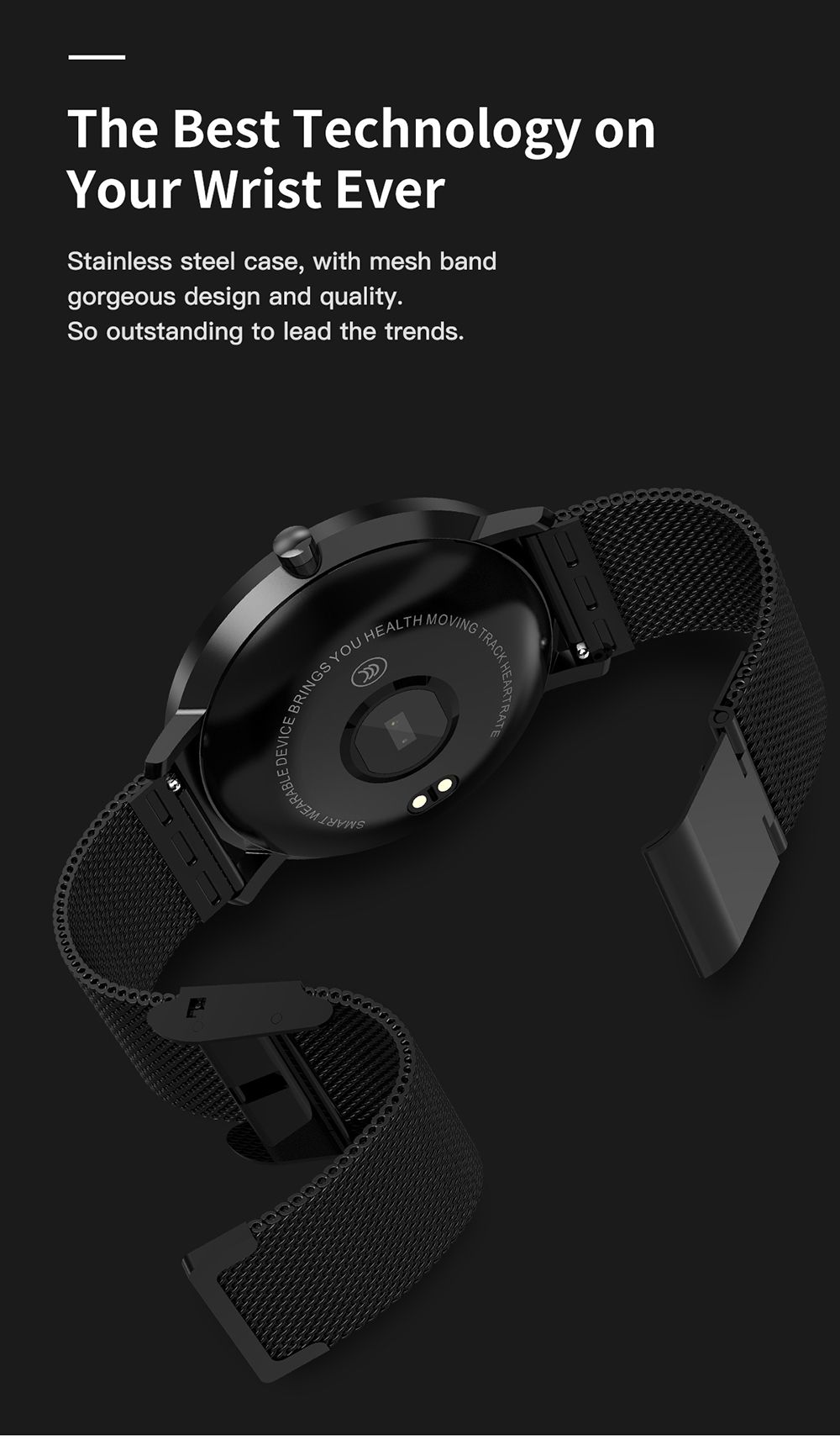 | Others | Chipset: Nordic NRF52832 Quality Stardard:GB4943.1-2011;GB/T22450.1-2008 Waterproof Level: IP68 Watch Size: Watch:41.8*12mm;Strap: 240mm (metal);250mm (silicon) Watchcase: Zinc Alloy (Silver/ Black) + Enhanced Mineral Glass Watch Strap: Dual color ediable silicone watch band & Stainless stee mesh band Charge Mode: 2 Pin magnetic type Bluetooth push: Incoming Call, WhatsApp, Facebook, WeChat, Email notifications Call Reminder: Display caller, Decline call Heart Rate Monitor: Support continuous heart rate test, every 5 mins test once Pedometer: Steps, Calorie, Distance Sedentary Remind: Support Sleep Monitor: 22:00-8:00 auto turn on Vibrator: Support Watch Languages: Chinese, English, Japanese, Russian, Spanish, Portuguese, French, Italian, German Notification Languages: Simplified Chinese, Traditional Chinese, English, Japanese, German, French, Russian, Portuguese, Spanish, Italian, Malay, Polish Apps Languages: Simplified Chinese, Traditional Chinese, English, Korean, Japanese, German, French, Russian, Portuguese, Spanish, Italian, Malay, Polish Other Function: Call & Message Notification |