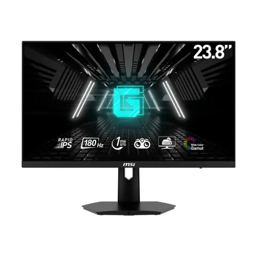 The MSI G244F E2 monitor is a 23.8-inch Rapid IPS panel display that provides a sharp 1920 x 1080 pixel (FHD) resolution. With its amazing 1ms reaction time (GTG) and quick 180 Hz refresh rate, it's perfect for fast-paced gaming. Vibrant images are guaranteed by the monitor's 250 nits of brightness and 1000:1 contrast ratio. Owing to its IPS display, the monitor provides 178 degrees of horizontal and vertical viewing angle. This monitor is perfect for content production and graphics work because of its remarkable color capabilities, which encompass 94.4% Adobe RGB, 92.05% DCI-P3, and 122.88% sRGB color gamut. Moreover, Adaptive-Sync technology is included to stop screen tearing and stuttering when playing games. It includes Night Vision to improve visibility in low light conditions and Anti-Flicker and Less Blue Light technologies to lessen eye strain during extended use for increased comfort. It has one Display Port (1.2a), two HDMI (2.0b) connectors, and one Earphone out for connectivity. MSI G244F E2 23.8 inch gaming monitor can also be mounted using VESA hardware and comes with a Kensington lock for added security. When not in the stand, the monitor weights 4.2 kg.