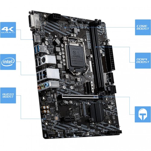 PRO series helps users work smarter by delivering an efficient and productive experience. Featuring stable functionality and high-quality assembly, PRO series motherboards provide not only optimized professional workflows but also less troubleshooting and longevity. MSI motherboards let you manage speeds and temperatures for all your system and CPU fans. Total Fan Control allows you to check your primary system characteristics in a simplified graphical interface. You can also set up to 4 temperature targets for CPU and motherboard, which will adjust the fan speeds automatically. Stay connected with Intel LAN, optimized for stable internet throughput ideal for championship level online plays. MSI LAN Manager automatically classifies and prioritizes the latency-sensitive applications, giving you the best online experience with low latency. MSI conducts thorough memory testing with the most popular memory brands under extreme conditions to ensure your system runs stable no matter what. Our memory partners include brands like Corsair, Crucial, Kingston, G.Skill, and many more to optimize memory modules and configurations. Core Boost technology combines MSI's premium layout and optimized power design which allows for faster and undistorted current delivery to the CPU at pin-point precision. Creating a perfect condition to support multi-core CPU running at full speed.