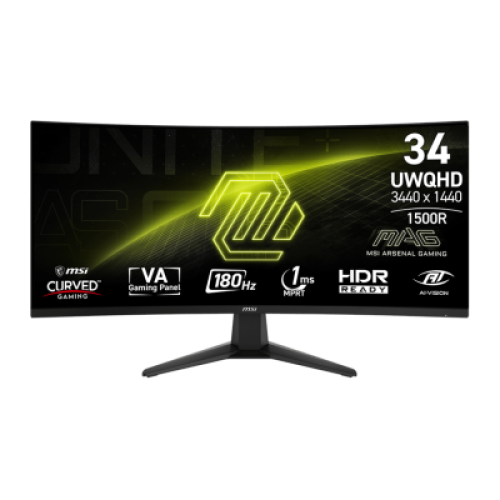 The MSI MAG 346CQ is a 34-inch UWQHD curved gaming monitor designed for a highly immersive and responsive gaming experience. Its expansive 3440 x 1440 resolution and 21:9 aspect ratio provide a wide field of view, making it ideal for everything from cinematic single-player adventures to competitive gaming.