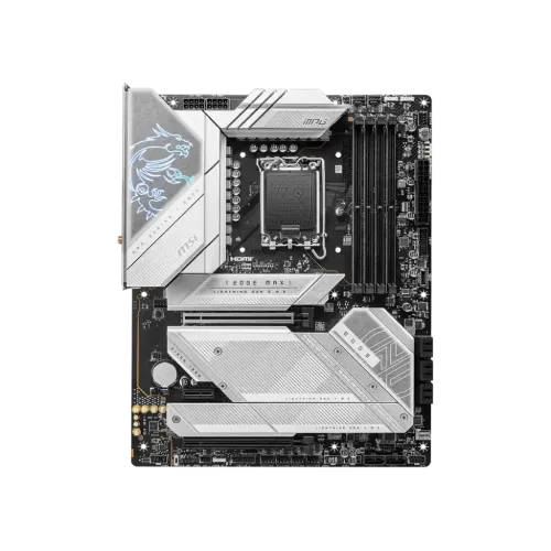 The MSI MPG Z790 EDGE TI MAX WIFI DDR5 ATX Motherboard is a high-performance motherboard that supports Intel Core 14th/13th/12th Gen Processors, as well as Intel Pentium Gold and Celeron Processors for the LGA 1700 socket. With its PCIe 5.0 slot, Lightning Gen 5 x4 M.2, and USB 3.2 Gen 2x2, it also supports DDR5 Memory at speeds of up to 7800+(OC) MHz, giving a lightning-fast gaming experience. With a 16+1+1 Mirrored Power Arrangement, two 8-pin CPU power connections, Core Boost, and Memory Boost, the motherboard has an increased power architecture. It also boasts a premium thermal solution, which includes a larger heatsink with heat-pipe, MOSFET thermal pads certified for 7W/mk, extra choke thermal pads, and M.2 Shield Frozr, which ensures great performance and a non-stop gaming experience. The MSI MPG Z790 EDGE TI MAX WIFI DDR5 ATX motherboard also has a 2.5G LAN and Wi-Fi 7 Solution, giving a secure, reliable, and fast network connection. It also boasts AUDIO BOOST 5, which provides studio-grade sound quality for the most immersive gaming experience. The motherboard is constructed with a high-quality PCB, a 6-layer PCB composed of server-grade level material, and has a pre-installed I/O Shield, which provides greater EMI protection and ease of installation. The MSI MPG Z790 EDGE TI MAX WIFI DDR5 ATX Motherboard is a high-end motherboard with great performance and features for both gamers and professionals.