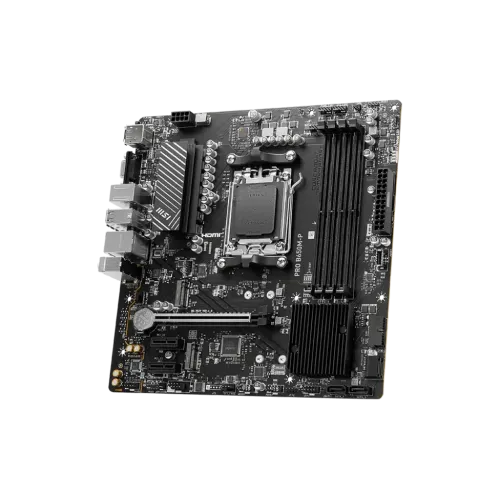 The MSI PRO B650M-P DDR5 AMD AM5 mATX Motherboard is a powerhouse of modern computing technology. Built to support AMD Ryzen 7000 Series Desktop Processors and DDR5 memory, it ensures compatibility with the latest CPU technology and offers blazing-fast memory speeds of 7200+MHz when overclocked. With features like Core Boost and Memory Boost, this motherboard provides exceptional processing power, stability, and data signal purity. Its 6-layer PCB constructed with 2oz thickened copper enhances durability and reliability. Gaming enthusiasts will appreciate the PCIe 4.0 slots and Lightning Gen 4 x4 M.2 slot for lightning-fast data transfers and support for high-end graphics cards. Professionals and multimedia users will benefit from the upgraded 2.5G LAN, ensuring a secure, stable, and fast network connection. Moreover, the Audio Boost technology delivers studio-grade sound quality for an immersive gaming experience. To protect your VGA cards against bending and EMI, Steel Armor is in place. In essence, the MSI PRO B650M-P motherboard is a versatile and robust platform suitable for gamers, content creators, and professionals alike.