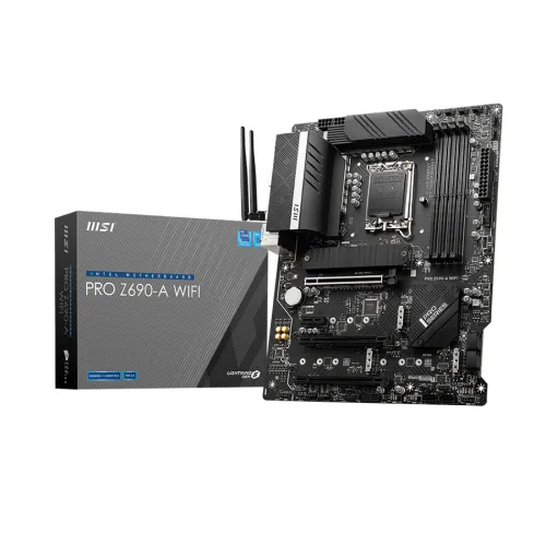 Streamline The Performance Of Your Business Rig With The MSI PRO Z690-A WIFI DDR4 LGA 1700 ATX Motherboard From MSI. Featuring An LGA 1700 Socket And The Z690 Chipset, This Motherboard Is Compatible With Intel 12th Gen Core, Pentium Gold, And Celeron Processors. Install Up To 128GB Of Dual-Channel RAM Across Four DDR5 Memory Slots, With Speeds Up To 6400 MHz Supported Via Overclocking. Four M.2 And Six SATA III Connectors Accommodate Storage Drives, While A PCIe 5.0 X16 Slot, Two PCIe 3.0 X16 Slots, And A PCIe 3.0 X1 Slot Can Be Used To Install Various Adapter Cards. This Board Also Supports AMD CrossFireX For Multi-GPU Setups.
