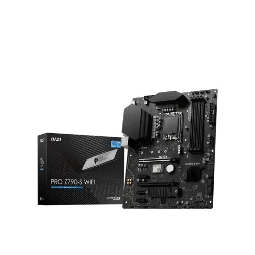 The MSI PRO Z790-S WiFi DDR5 ATX Motherboard is a powerful platform with cutting-edge technologies for high-performance computing. This motherboard, designed to handle 14th, 13th, and 12th Generation Intel Core, Pentium, and Celeron processors via the LGA 1700 socket, provides a strong foundation for a wide range of computer applications. The presence of four DDR5 RAM slots, each with a maximum capacity of 192GB and an overclocking potential of 6600+MHz (OC), provides not only abundant memory resources, but also the ability to improve performance and multitasking efficiency. The motherboard has 1x HDMI1.4 for graphics output, giving a dependable and diverse display solution with support for high-definition pictures. Dual 2.5Gbps LAN ensures lightning-fast and robust cable connections, and Wi-Fi 6E technology for high-speed wireless connectivity are among the sophisticated networking capabilities. Furthermore, the motherboard supports DisplayPort, which adds flexibility to the display arrangement and allows for high-resolution graphics for immersive computing experiences. Aside from its processor and memory capabilities, the MSI PRO Z790-S motherboard includes a number of features that improve overall system functioning. This motherboard delivers a feature-rich platform for demanding activities, whether for gaming aficionados, content makers, or professionals. The MSI PRO Z790-S WiFi DDR5 ATX Motherboard is a dependable and high-performance alternative for consumers looking for top-tier performance and adaptability in their computing systems, thanks to its powerful CPU compatibility, amazing RAM capacity and speed, and sophisticated networking and display capabilities.
