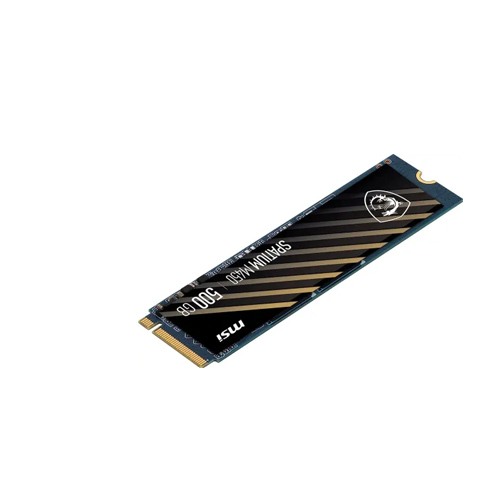 The MSI SPATIUM M450 500GB PCIe 4.0 NVMe M.2 SSD is a high-performance storage solution designed to meet the demanding needs of modern computing environments. With its impressive specifications and advanced features, it offers reliable performance and data security for various applications. Featuring a capacity of 500GB, this SSD provides ample storage space for operating systems, applications, games, and multimedia files, ensuring smooth multitasking and fast data access. The M.2 2280 form factor ensures compatibility with a wide range of motherboards and systems, making it suitable for desktops, laptops, and workstations. Utilizing 3D NAND flash technology, the SSD delivers enhanced reliability, endurance, and performance compared to traditional NAND flash memory. The PCIe Gen4x4 interface and NVMe 1.4 protocol enable lightning-fast data transfer speeds, with sequential read and write speeds of up to 3500MB/s and 1200MB/s respectively. This ensures quick boot times, faster application loading, and improved overall system responsiveness. To ensure data integrity and reliability, the SSD incorporates various advanced features. These include TRIM support for performance optimization, SMART for self-monitoring and analysis, LDPC ECC algorithm for error correction, end-to-end data path protection, and autonomous power state transition (APST) for power efficiency. Additionally, Pyrite encryption technology provides data security, safeguarding sensitive information from unauthorized access. The SSD boasts a mean time between failures (MTBF) of up to 1,500,000 hours, indicating its reliability and durability for prolonged use. It also offers a total bytes written (TBW) rating of 150, ensuring long-term endurance and longevity. With its compact physical dimensions of 80.00mm (L) x 22.00mm (W) x 2.15mm (H), the SSD is easy to install and fits seamlessly into M.2 slots on compatible devices. It operates within a wide temperature range of 0°C to 70°C, ensuring stable performance in various environmental conditions. Backed by a 5-year manufacturing warranty, the MSI SPATIUM M450 SSD provides users with peace of mind, offering reliability and support for their storage needs over an extended period.
