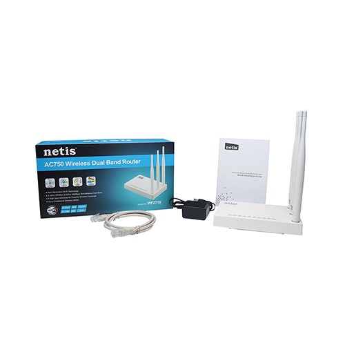 The Netis router WF2710 Dual Band offers high speed to connect your computers, smartphones, wireless cameras, and other Wi-Fi devices. Bundled with three 5dBi high gain antennas, Netis WF2710 Dual Band Router ensures better wireless coverage and allows you to enjoy the wireless freedom anywhere around your home, ideal for faster downloading, Internet calling, and HD video streaming. WF2710 Dual Band Wireless N Router Offers high speed to connect Bundled with two 5dBi high gain antennas Ensures better wireless coverage Allows you to enjoy the wireless freedom Ideal for faster downloading, Internet calling, and HD video streaming Easy setup assistant provides quick & hassle-free installation Low power consumption