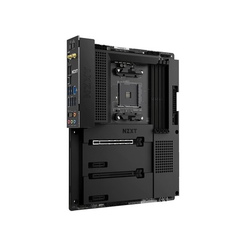 NZXT N7 B550 Matte Black Gaming Motherboard comes with WiFi 6E connectivity. This motherboard enables a visually seamless backdrop for any build with all the features of the reliable AMD B550 chipset. It is compatible with 3rd Gen AMD Ryzen processors (3000, 4000, and 5000 Series Processors). It supports memory overclocking up to 4600+ MHz and XMP. This motherboard has Two M.2 connectors for storage devices. It supports Multi-GPU support with AMD CrossFireX Technology. The board is equipped with Intel Wi-Fi 6E wireless connectivity and Bluetooth V5.2. It offers Digital RGB lighting control through NZXT CAM. Digital fan control for fan profiles within NZXT CAM for seven independent fan channels. It has 8-channel high-definition audio.