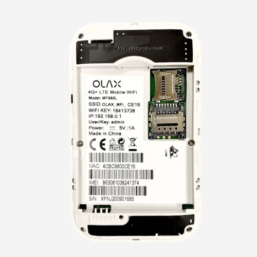 The OLAX 4G HOTSPOT MF980L is an advanced Router wifi sharing device that allows up to 10 wifi users to connect and share data over a fast 4G LTE network. With a powerful battery capacity of 2100 MAh, it can work continuously for 8-10 hours, ensuring uninterrupted access to the internet.The device comes with a SIM card slot, enabling users to insert their preferred network provider's SIM card to access the internet. Additionally, it has a T flash card slot that supports expandable memory of up to 32GB, allowing users to store and share data with ease.The OLAX 4G HOTSPOT MF980L offers blazing fast internet speeds of up to 150Mbps/50Mbps, ensuring that users can stream, browse, and download content without any lag. It also has a maximum LAN data rate of 150Mbps and comes with modem function support.