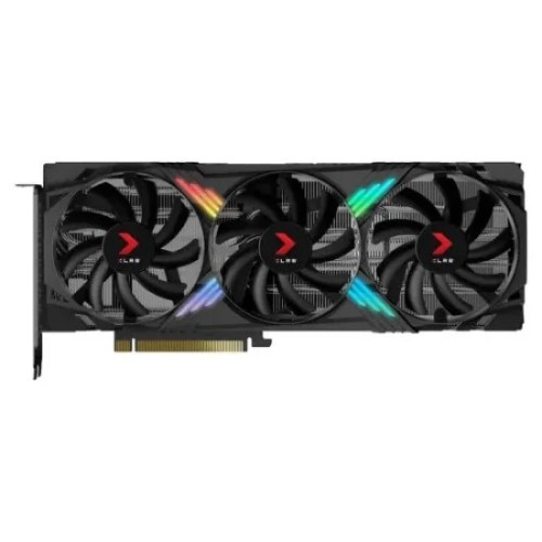PNY GeForce RTX 4070 12GB XLR8 Gaming VERTO EPIC-X RGB Triple Fan GDDR6X Graphics Card is a high-performance graphics solution tailored for gamers and professionals seeking top-tier visuals and computational power. This card is built on NVIDIA's advanced architecture and offers several features that make it a compelling choice for demanding applications and games. The PNY GeForce RTX 4070 comes equipped with 12GB of GDDR6X video memory, which provides ample capacity for handling high-resolution textures and complex scenes in modern games and professional applications. Its memory interface is 192-bit, ensuring efficient data transfer between the GPU and the memory. The card operates via a PCI-Express 4.0 x16 bus, offering high bandwidth for data-intensive tasks. This GPU boasts a core clock speed of 1920 MHz, which can be boosted up to 2475 MHz, ensuring smooth and responsive performance across various applications. With 5888 CUDA cores, it delivers significant parallel processing power, making it well-suited for tasks such as real-time ray tracing, AI-enhanced graphics, and complex simulations. The power consumption of the card is rated at 200 W, which is moderate for a card of this caliber, balancing performance and energy efficiency. The PNY GeForce RTX 4070 supports a maximum resolution of 7680 x 4320 at 120Hz, making it capable of driving high-resolution displays with ease. This is particularly beneficial for users who demand high detail and fluidity in their visual experience, such as gamers, graphic designers, and video editors. For connectivity, the card features three DisplayPort 1.4 outputs and one HDMI 2.1 port. This setup allows for a multi-display configuration of up to four screens, enhancing productivity and immersive experiences. Physically, the card measures 305.1 x 119.4 x 40 mm, a sizable but manageable dimension for most modern PC cases. It features a triple-fan cooling system, which helps maintain optimal temperatures even under heavy loads. The EPIC-X RGB lighting adds a customizable aesthetic appeal, allowing users to synchronize the lighting with their overall PC theme. The card requires a single 8-pin power connector, simplifying the installation process compared to other high-end GPUs that may require multiple connectors. This ease of installation is coupled with robust power management, ensuring stable and reliable operation. In summary, the PNY GeForce RTX 4070 12GB XLR8 Gaming VERTO EPIC-X RGB Triple Fan GDDR6X Graphics Card is a powerful and versatile option for users seeking high performance and advanced features. Its combination of substantial memory, high clock speeds, extensive connectivity options, and efficient cooling makes it an excellent choice for both gaming and professional applications. Whether building a new PC or upgrading an existing setup, this graphics card offers the capabilities needed to handle today's most demanding tasks and games with ease.