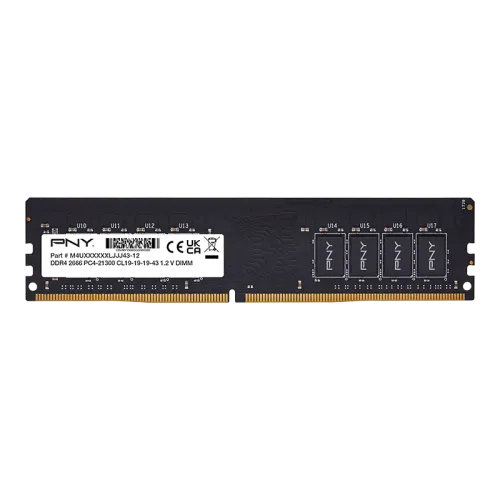 The PNY Performance 8GB DDR4 2666MHz Desktop RAM is 288-pin DIMM is designed for simple installation in a desktop computer and has a clock speed of 2666 MHz, DDR4 or PC4-21300 memory, and a CAS latency of CL19. The PNY 8GB Performance DDR4 2666 MHz DIMM Desktop Memory Module, which is compatible with Windows 10 and previous operating systems, also offers operating speeds of 2400 and 2133 MHz and requires 1.2V of power. PNY DDR4 memory has quicker speeds, more bandwidth, reduced power consumption, and improved thermal performance, resulting in a notable increase in PC reaction times while using memory-intensive applications.
