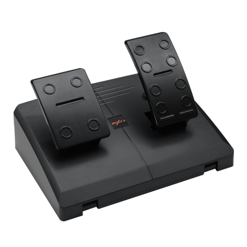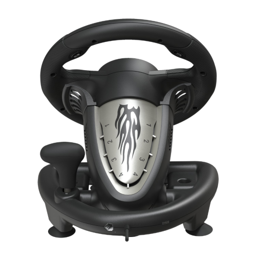 The wheel comes with a set of two pedals for acceleration and braking, which are designed to be linear and responsive. The pedal unit is also foldable for easy storage. For stability during intense gameplay, the wheel base is equipped with strong suction cups and a C-shaped clamp system. The ergonomic design features a rubber grip for comfortable use during long sessions.