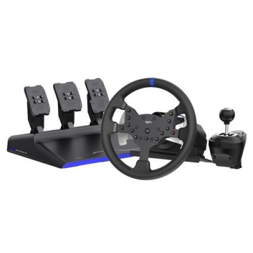 | Others | FFB Drive System: Gear drive, dual gears + dual motors Mode on PC: X-input / D-input (No feedback in xinput mode) Pedal Technology: Hall magnetic induction linear pedal Gear Lever Type: 6+R gear lever Two independent buttons (can be set as handbrake and high and low gear switching buttons in the truck game) |