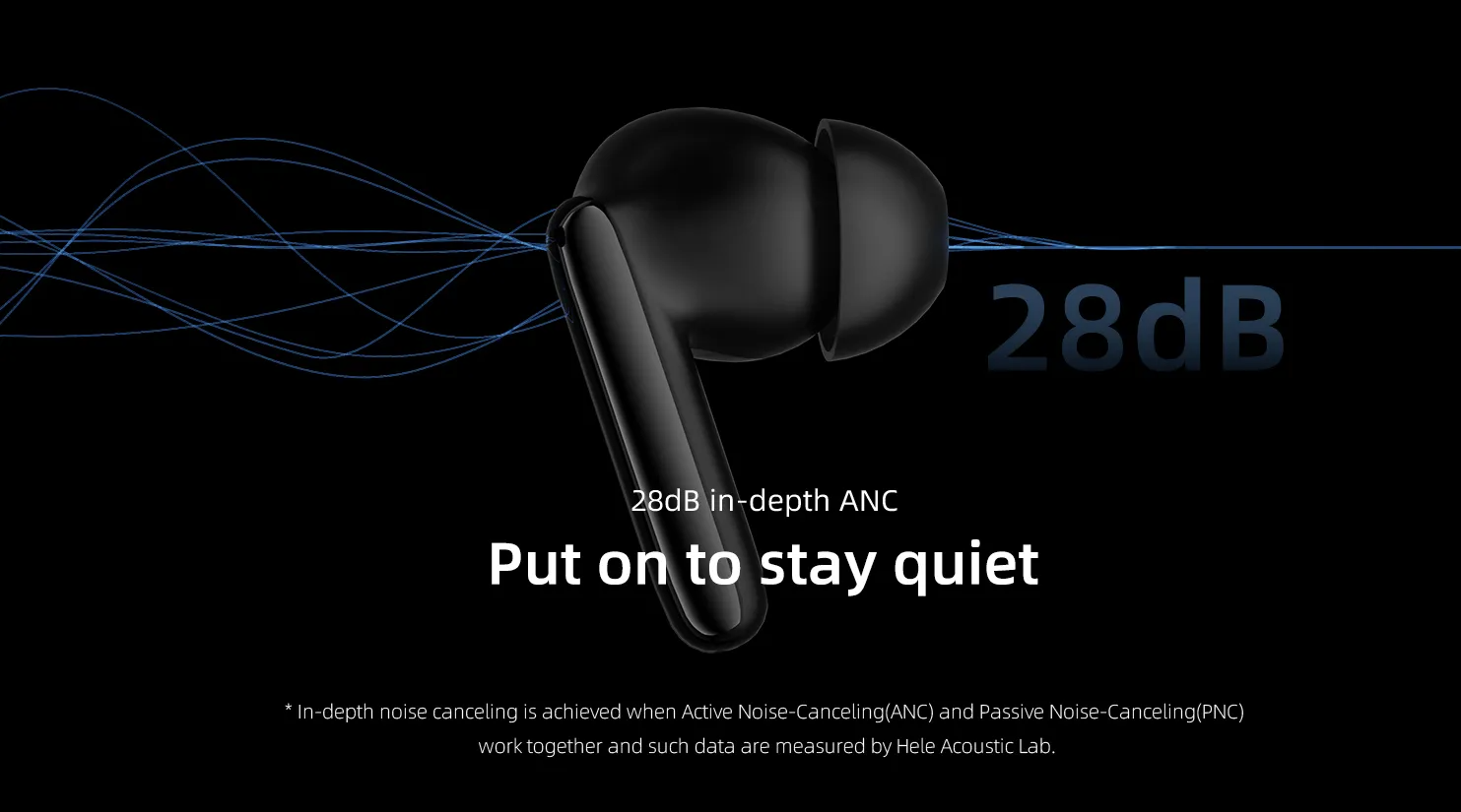 Active Noise Cancellation: Turn on ANC mode, the noise reduce up to 28dB, makes you focus on what you want to hear.