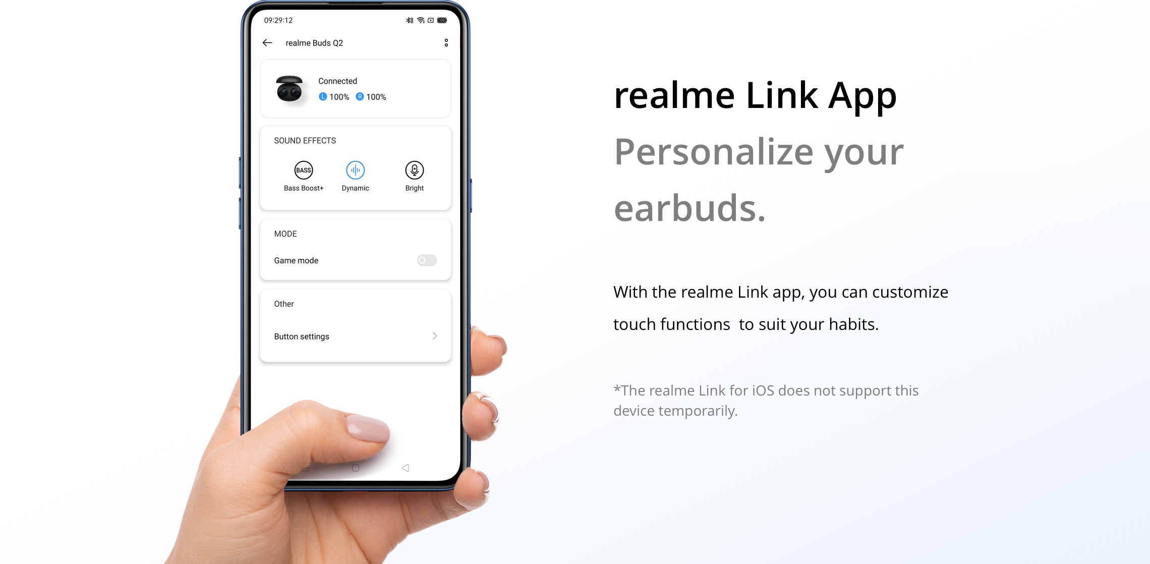 Realme Buds Q2 the true wireless earphones retain the design as the first Buds Q but come with improved game mode, IPX4 water resistance, fancy design, and a so-called Environmental Noise Cancellation (ENC) feature. The latter only works for calls and is not the much sought-after active noise cancelation. Buds Q2’s Game Mode offers low latency of 88ms, enabling seamless sync between audio and video. The Realme Buds Q2 TWS earbuds support touch controls to play or pause music, answer or end calls, and enter or exit gaming mode. As mentioned, the earbuds support environmental noise cancellation (ENC) for calls. Realme Buds Q2 has a kaleidoscope-like surface finish to give the earbuds a unique look. The charging case is egg-shaped and has LED indicators to let the user know when the battery is about to die.
