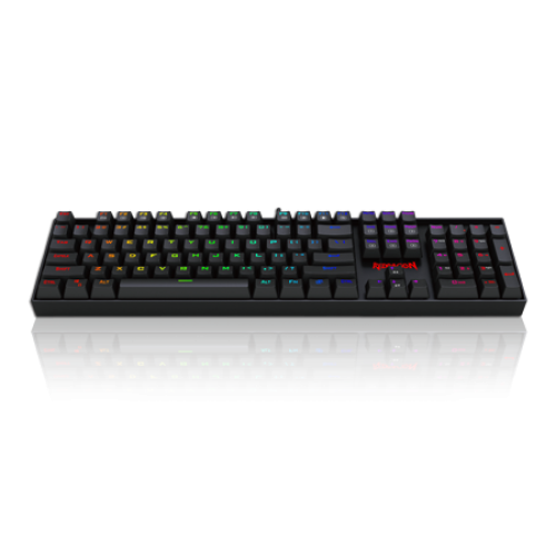Brand - Redragon, Model - Redragon MITRA K551RGB-1, Series - Gaming, Style & Size - Regular Big, Type - Mechanical Gaming Keyboard, Connection Type - Wired, Interface - USB, Language (English) - Yes, Language - English, Lighting - Yes, Lighting Type - RGB, Fingerprint Sensor - No, Mechanical (Key) - Yes, Mouse, Touchpad - Keyboard only, Number of Button - 104, Compatibility - Windows, Mac Supported PC & Laptop, OS Support - Windows 10, Windows 8, Windows 7, Windows Vista, or Windows XP, Limited Mac OS, Color - Black, Specialty - The Redragon K551 isnt your average mechanical gaming keyboard. Not only is it a great choice for entering the World of Mechanical Keyboards, its also over-engineered and built to take a beating, it is loaded with features aircraft grade aluminium and ABS construction, plate mounted keys, double-shot injection moulded keycaps, high-end switches with mechanical ultra-last springs, crisp and bright adjustable RGB LED backlighting, a gold-plated USB connector for a reliable connection, and a splash-resistant design. The Industrial Design of the Redragon K551 Mechanical Keyboard is not just nice to look at, it also has great ergonomics and a space saving design. No matter how long you type or how intense your gaming marathons are, you are always comfortable., Others - Actuation Force: 60g +/- 15g. Keystroke Travel: 4.0mm +/- 0.2mm., Feature - Full Size keyboard with 104 standard keys, full numeric keypad. All 104 keys are 100% conflict free, anti-ghosting. Windows key lockout option. 12 Dual action Multimedia and F keys. WIN key can be disabled for gaming. Ultra-durable keys tested to 50 million keystrokes.