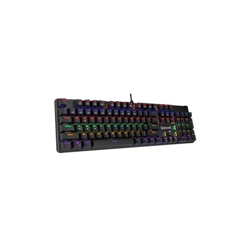 The Redragon K608-Rainbow Valheim is a mechanical gaming keyboard that offers a perfect blend of performance, durability, and aesthetics, making it an ideal choice for both gamers and typists. Equipped with Red switches, this keyboard is designed for those who prefer smooth, linear keystrokes with minimal resistance. These Red switches are known for their quiet operation and rapid response, making them particularly suitable for fast-paced gaming where every millisecond counts.