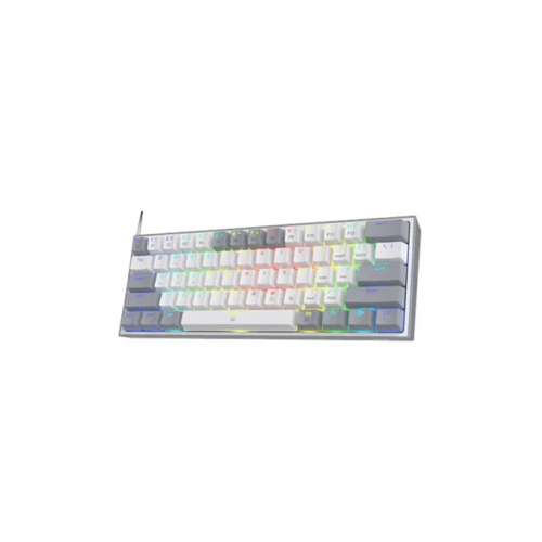 The Redragon K617 Fizz is a compact 60% mechanical gaming keyboard that combines style, performance, and portability. With its sleek gray and white color scheme, this keyboard stands out aesthetically, making it a great addition to any gaming setup. Designed for gamers who value space efficiency and mobility, the K617 Fizz has a minimalist design with just 61 keys, omitting the function row, navigation cluster, and numpad to save space.Equipped with Red switches, the K617 Fizz offers a smooth and linear keystroke experience. These switches are known for their quiet operation and low actuation force, making them ideal for fast-paced gaming and typing sessions. The lack of tactile bump and click sound makes them less distracting and more comfortable for extended use, especially for gamers who prefer quick and responsive keypresses.The keyboard features vibrant RGB backlighting with multiple customizable modes, allowing users to personalize their lighting effects to match their gaming environment. The backlighting is well-distributed and enhances visibility in low-light settings, adding a dynamic element to the gaming experience.Despite its compact size, the K617 Fizz doesn’t compromise on durability. It’s built with high-quality materials, ensuring it can withstand the demands of intense gaming. Additionally, it offers anti-ghosting and N-key rollover, which ensures that multiple keypresses are registered accurately, a crucial feature for competitive gaming.Overall, the Redragon K617 Fizz is an excellent choice for gamers seeking a portable, stylish, and reliable mechanical keyboard with smooth Red switches and vibrant RGB lighting.