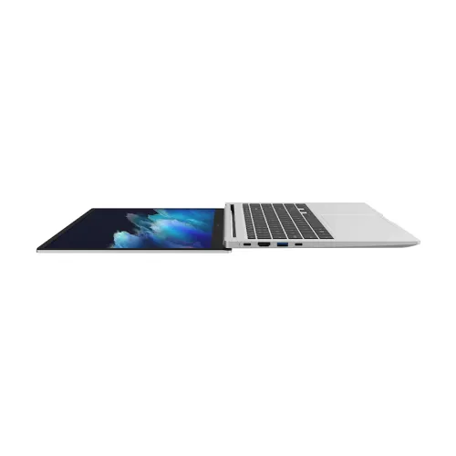 The Samsung Galaxy Book Core i5 11th Gen laptop is designed to be incredibly portable. Its thin and lightweight profile allows you to take it with you wherever you go. When unfolded, it reveals a spacious workspace with a narrow bezel that maximizes the screen-to-body ratio. The full aluminum body not only adds to its sleek appearance but also ensures durability.