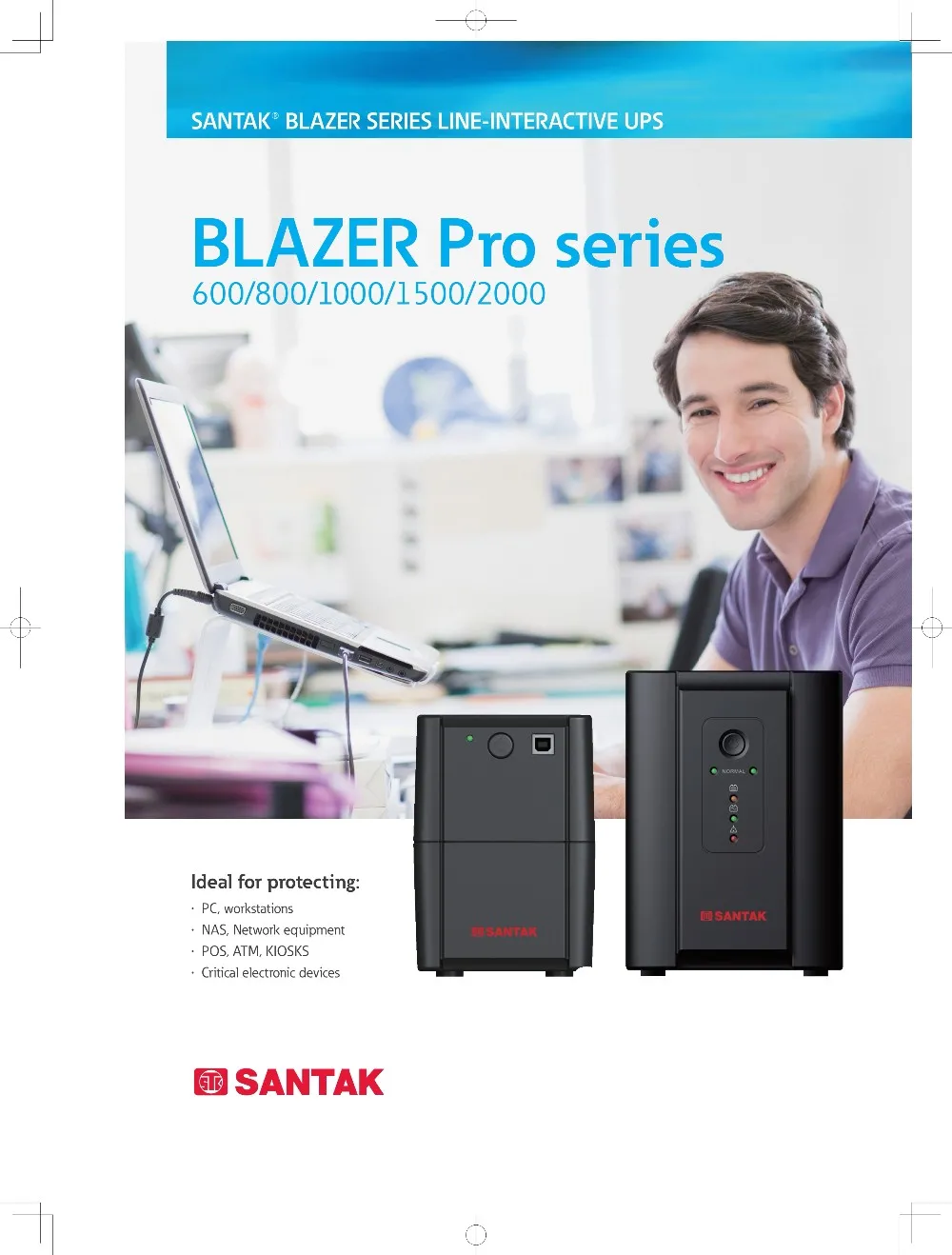 Santak Blazer 2000 Pro Microprocessor Control Guarantees High Reliability. Equipped With Boost And Buck AVR To Stabilize The Output Voltage. Wide Input Voltage & Frequency Range, Suits The Generator. Santak Blazer 2000 Pro UPS Built-In DC Start Function Enables UPS To Be Started Up Without AC Power Supplied. Santak Blazer 2000 Pro Features A Super-Fast Charger That Shortens The Charging Time To 2-4 Hours. Santak Blazer 2000 Pro Has Auto Charging Albeit The UPS Is Off.