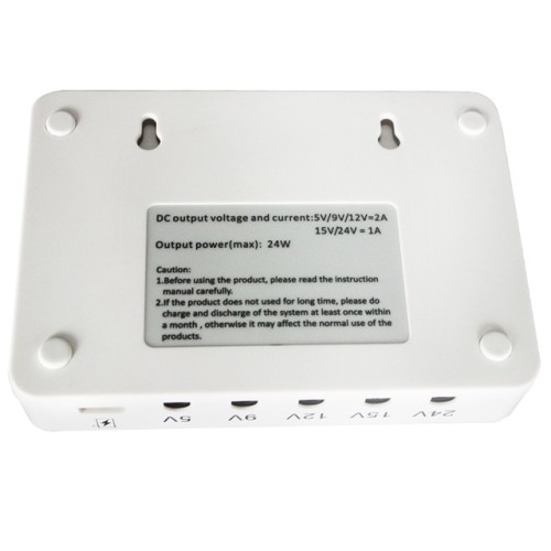 The SKE SK616 Mini DC UPS is a compact and portable power backup solution designed specifically for devices like Wi-Fi routers, ONU (Optical Network Unit), IP cameras, and CC cameras. With its high-capacity lithium battery and multiple output options, it aims to provide uninterrupted power supply to your critical devices.Featuring a sturdy and compact design, the SK616 Mini DC UPS is convenient to use and carry. It serves as a reliable backup power source when your primary power supply is interrupted or unavailable.The unit supports a wide input voltage range of 100v~300v AC, making it suitable for various power supply environments. It converts the input voltage to selectable output voltages, including 5V, 9V, 12V, 15V, or 24V DC, depending on your device's requirements.With an output power of 24W, the SK616 can effectively support and power devices such as Wi-Fi routers, ONU, IP cameras, and CC cameras. It ensures stable and reliable power delivery to keep your essential devices operational during power outages or fluctuations.The SK616 Mini DC UPS utilizes a lithium battery, providing a total capacity of 15600mAh. The battery consists of six 2600mAh cells, offering sufficient energy to keep your devices running for extended periods. It has a system voltage of 11.1V and a rated charge current of 1A.The unit features a rated discharge current of 5V/9V/12V at 2A and 15V/24V at 1A. This allows for efficient power delivery to your devices, ensuring they receive the necessary voltage and current to operate optimally.To protect the battery and connected devices, the SK616 Mini DC UPS incorporates various safety features. These include overcharge protection for the battery, overload and short circuit protection for the system, and protection against overvoltage and undervoltage.