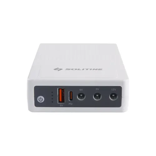 The Solitine SOL-604 is a versatile and compact power solution specifically engineered to keep your essential networking devices online during power outages. With a 10,000mAh Lithium-polymer battery, this Mini DC UPS strikes an ideal balance between a portable form factor and reliable performance for home and office setups.Connectivity and Multi-OutputThe SOL-604 is designed to be a "one-stop" backup for multiple devices. It features a diverse range of output ports to accommodate various hardware requirements:DC Outputs: Selectable 9V and 12V ports, perfect for standard Wi-Fi routers and ONUs.USB Port: A 5V/2A output for charging mobile phones, power banks, or small USB-powered fans.PoE Port: Supports 15V and 24V Power over Ethernet, making it compatible with VOIP phones, wireless bridges, and IP cameras.Efficiency and ProtectionDespite its smaller footprint compared to higher-capacity models, the SOL-604 delivers approximately 4 to 8 hours of backup time, depending on the power draw of the connected devices. It features an intelligent circuit design that includes:Overcharge and Over-discharge protection to prolong battery health.Short-circuit prevention to keep your expensive networking gear safe.Auto-start function that ensures the UPS begins charging and powering devices as soon as the main electricity returns.Practical DesignThe unit is housed in a durable, flame-retardant casing with clear LED indicators on the front panel. These lights allow you to monitor the battery level at a glance ($25\%, 50\%, 75\%, 100\%$). Its "plug-and-play" nature means it sits silently in your setup, providing a zero-millisecond transfer time so your internet connection never drops when the grid fails.