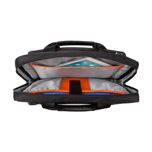 The Targus TBT913EU-72 Business Casual Slipcase Laptop Bag offers everyday protection for computers up to 14" laptops. With its padded laptop compartment, simple top load access, and easy storage makes the bag more ellegent. Soft-grip handles, a retractable shoulder strap, and a trolley strap for attaching to your roller luggage for travel characterize this slimmer-than-sleeve case that is roomier than a sleeve. Your laptop is protected by a padded pouch inside, and periodicals or documents is always handy. Keep your smartphone, charger, and other electronics in the front pocket that zips closed. Remarkable contrast stitching and a sturdy fabric blend set this thin-profile, lightweight case apart. Targus TBT913EU-72 laptop bag comes with no warranty.