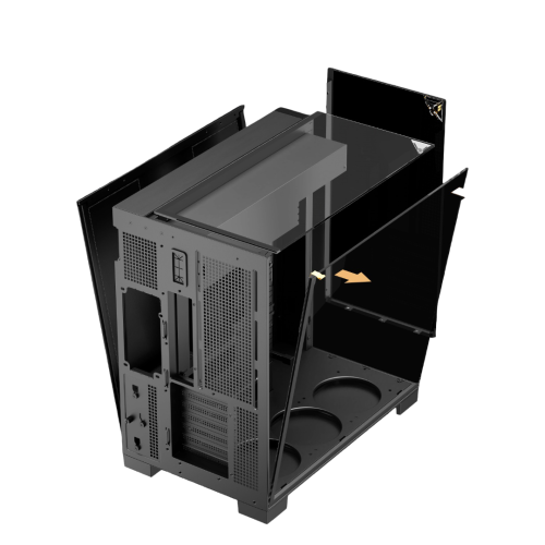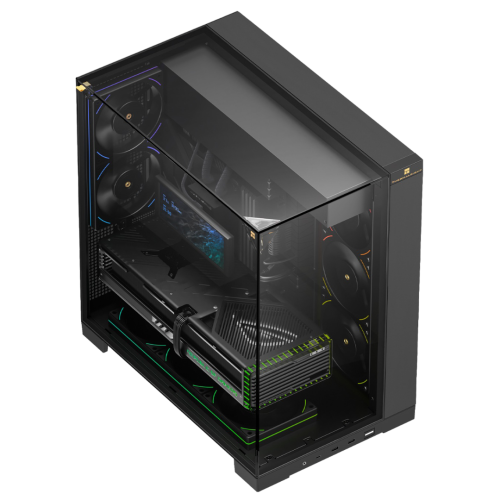 Vertical Airflow: The case encourages a bottom-to-top thermal path, drawing fresh air from the base to directly cool the GPU—an essential feature for modern, high-TDP mid-range cards.