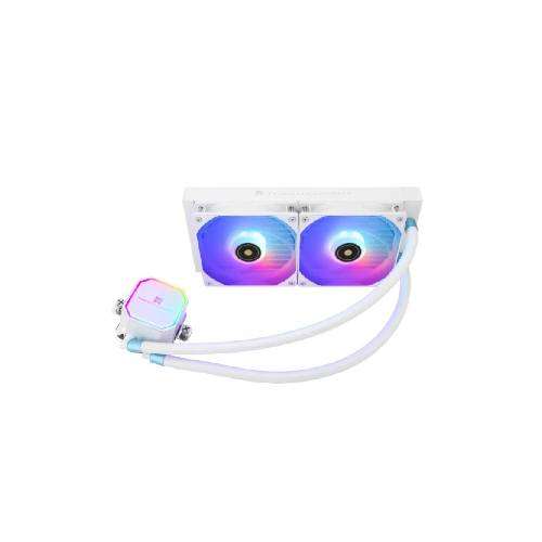 The Thermalright Frozen Prism 240 White ARGB All-In-One Liquid CPU Cooler is a cutting-edge cooling solution designed to elevate your system's performance while adding a touch of style. This water cooling system boasts a sleek and modern design with a radiant white finish, perfectly complementing any gaming or enthusiast PC build. At the heart of this cooler is its efficient water cooling system, featuring a 240mm aluminum radiator. The use of aluminum ensures excellent heat dissipation, keeping your CPU temperatures in check even during intense gaming sessions or demanding computational tasks. The 3300 RPM±10% pump provides robust and reliable water circulation, contributing to the cooler's impressive cooling performance. The Thermalright Frozen Prism 240 comes equipped with high-performance fans, operating at a rated speed of 1850 RPM±10%. These fans deliver a substantial airflow of 70.4 CFM (cubic feet per minute) at their maximum, ensuring effective heat dissipation and maintaining optimal temperatures for your CPU. The casing fans' air pressure of 2.64 mm H2O (MAX) further enhances their cooling capabilities. The ARGB lighting adds a vibrant and customizable visual element to your system, with a 3-PIN 5V connector allowing synchronization with compatible motherboards or controllers. The 4-PIN PWM connector facilitates efficient and adjustable fan speed control, enabling users to fine-tune the cooling performance to their specific needs. Compatibility is a key strength of the Thermalright Frozen Prism 240, supporting a range of CPU sockets. For AMD users, compatibility includes AM4 and AM5 sockets, while Intel users can enjoy compatibility with LGA 1366, 115X, 1200, 1700, 2011, 2011-3, and 2066 sockets. This broad compatibility ensures that the cooler is suitable for a wide variety of systems.