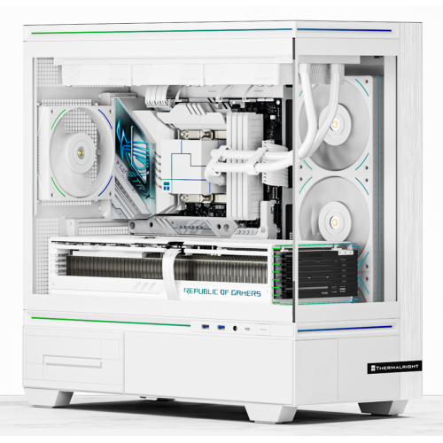 Aesthetic View: Features tempered glass panels on the side and front/side (often offering a 270-degree view) to showcase the internal components and ARGB lighting.