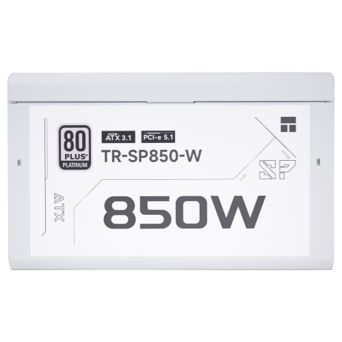 The Thermalright TR-SP850W is a premium $850\text{W}$ power supply unit (PSU) from the SP series, explicitly designed for high-end gaming and workstation builds that prioritize top-tier efficiency and a clean aesthetic. The "W" suffix confirms the White color scheme of the chassis and potentially the cables, ideal for white-themed PC builds.Elite Platinum Efficiency and Future-Ready Power 80 PLUS Platinum Certification: This is the unit's standout feature, guaranteeing exceptional energy efficiency—up to $92\%$ efficiency at $50\%$ load. This drastically reduces wasted heat, contributes to cooler system operation, and minimizes electricity costs.High Power Output: The robust $850\text{W}$ capacity provides more than enough stable power for modern, high-draw components, including demanding CPUs and high-end GPUs.Modern Compliance: The TR-SP850W is built to the latest ATX 3.1 standard and includes PCIe 5.1 support (featuring the native $12\text{V-2}\times 6$ connector). This crucial compliance ensures it can handle the intense, short-duration power spikes (up to $300\%$ power excursion) from the latest graphics cards like the NVIDIA RTX 40-series.Full Modularity and ReliabilityFully Modular Design: The fully modular cabling system allows users to connect only the necessary cables, dramatically simplifying installation, enhancing internal airflow, and enabling superior, clutter-free cable management.Premium Components: Thermalright builds this unit with high-quality internal components, including $105^\circ\text{C}$-rated Japanese capacitors and advanced LLC + DC-DC architecture for superior voltage regulation and minimal ripple noise.Cooling and Protection: A quiet $120\text{mm}$ intelligent fan provides cooling, often operating semi-passively under low loads for silent performance. The unit is protected by a comprehensive safety suite: OPP, OVP, OTP, OCP, SCP, and UVP.With a compact $140\text{mm}$ depth and a solid 5-year (or 7-year in some regions) warranty, the TR-SP850W is a high-performance, aesthetically pleasing, and reliable choice.
