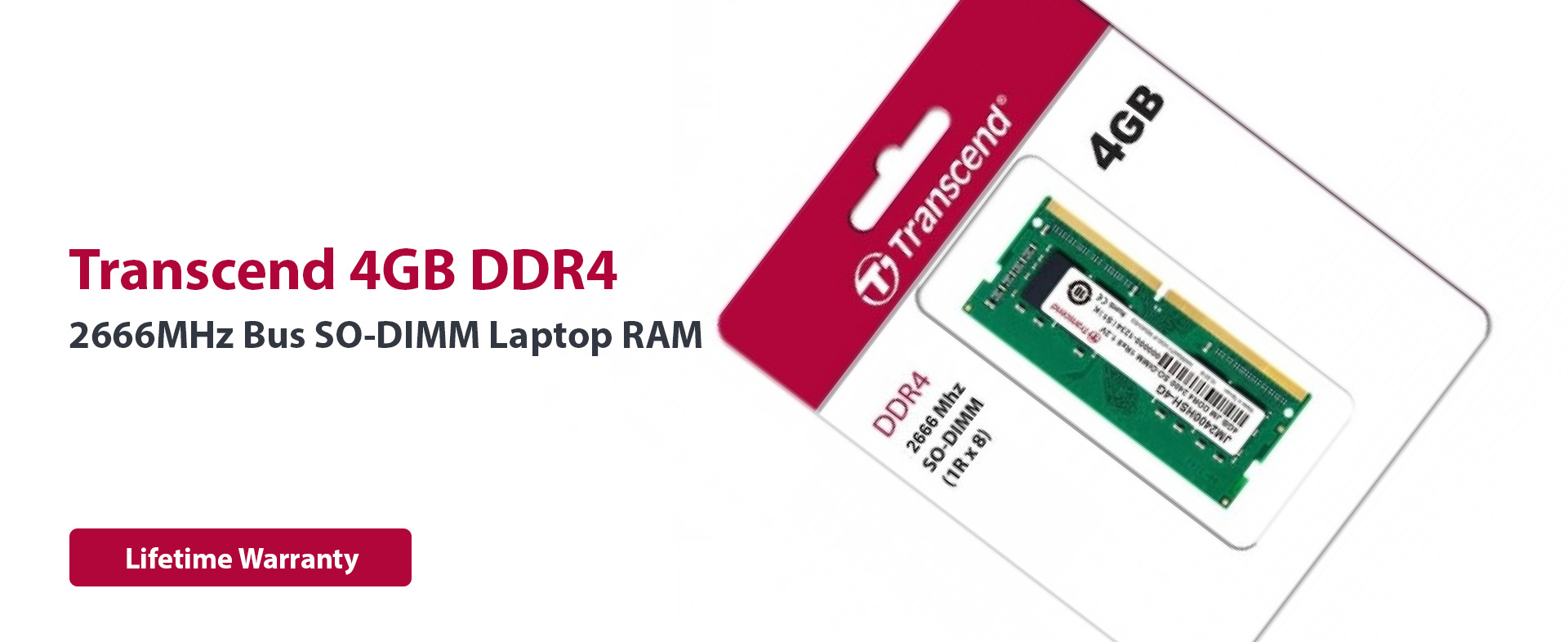 Boost your system's performance with the 4GB JetRam DDR4 2666 MHz CL19 SO-DIMM Memory Module from Transcend. Delivering speeds up to 2666 MHz, this single-rank 512Mx8 DRAM module is a plug-and-play memory upgrade designed to improve your computer's start-up times, overall responsiveness, and ability to handle data-intensive applications. Transcend 4GB DDR4 2666MHz Bus SO-DIMM Laptop RAM is unbuffered, features a CAS latency of CL19, and works on systems with a 260-pin SO-DIMM slot and a DDR4-enabled chip. Moreover, the module's nominal voltage rating of only 1.2V not only ensures cooler operation, but also reduces the electrical load on the memory controller for power savings of up to 40% versus standard 1.5V memory modules.